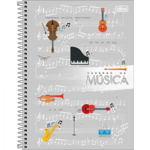 O Caderno de Música Espiral Capa Dura Universitário Tilibra 80 Folhas possui capa dura e folhas específicas para partituras. Ideal para atividades musicais.