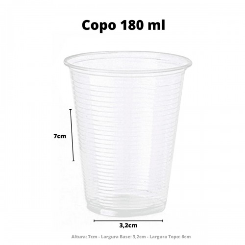 Copo plástico descartável 180ml, ideal para servir bebidas em sua festa, comercio ou eventos.
