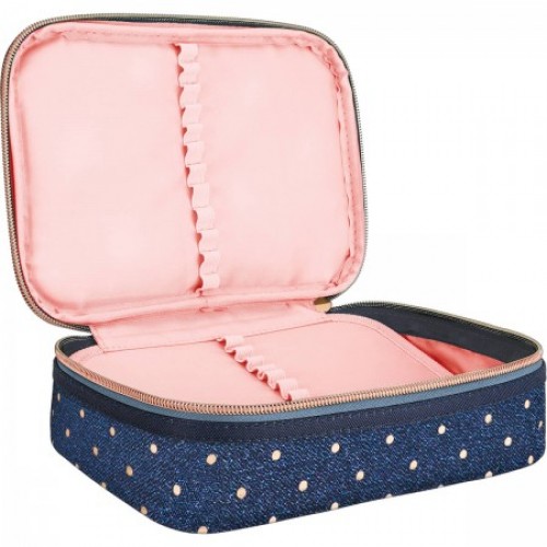 O Estojo Box Académie Poá é prático, espaçoso e ideal para quem possui muitos lápis, canetas e outros materiais e acessórios. Além de facilitar seu dia a dia na escola, esse estojo possui material resistente, é estruturado, espaçoso e possui divisória central com elásticos que auxiliam na organização do material. Possui fechamento em zíper.