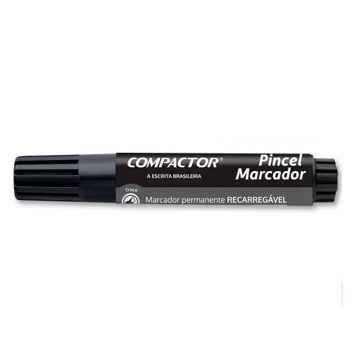 Descrição: Marcador pincel permanente atômico Compactor preto: traço grosso (4mm a 8mm), recarregável, tinta permanente resistente, ideal para diversas superfícies e trabalhos pesados. Compre na 3G Papelaria!