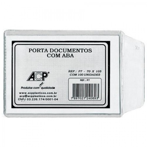 Descrição: O Porta Documento com Aba 70x105 ACP P-7, disponível na 3G Papelaria, é a solução ideal para proteger e garantir a durabilidade de seus documentos importantes, como RG, CPF, título de eleitor e outros no formato 70x105mm. Fabricado em plástico resistente, possui aba para maior segurança e conservação dos seus documentos.