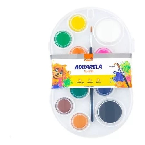Descrição: Aquarela godê BRW com 12 cores, pincel incluso, à base de água, fácil de usar, lavável, não tóxica, ideal para crianças. Estimule a criatividade com a 3G Papelaria João Pessoa, Paraíba!