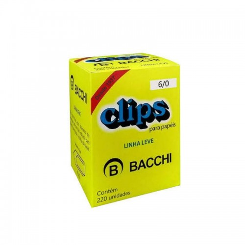 Descrição: Caixa de clips galvanizado Bacchi 500G 6/0 com 220 unidades: ideal para uso corporativo e escolar, prende papéis, filmes plásticos e outros. Organização detalhada para suas necessidades. Compre na 3G Papelaria!