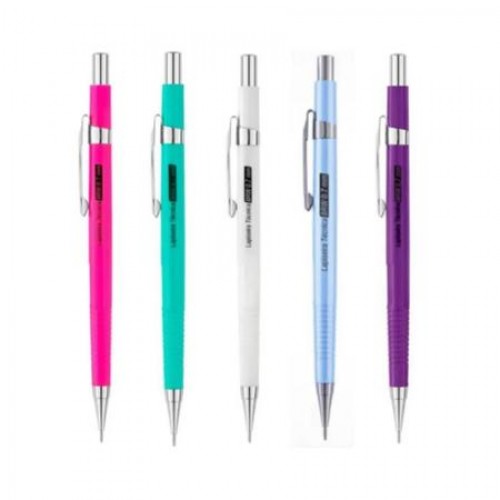 O grip ergonômico é um detalhe importante para garantir firmeza durante o uso, enquanto as cores vivas do corpo proporcionam um toque moderno e agradável. A ponta fixa metálica e o mecanismo preciso para avanço do grafite são características que indicam durabilidade e eficiência no uso diário.