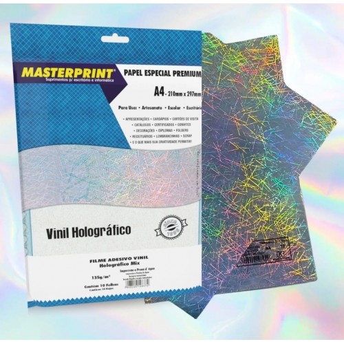 Filme A4 135g Adesivo Vinil Holográfico Mix c/10 folhas Masterprint