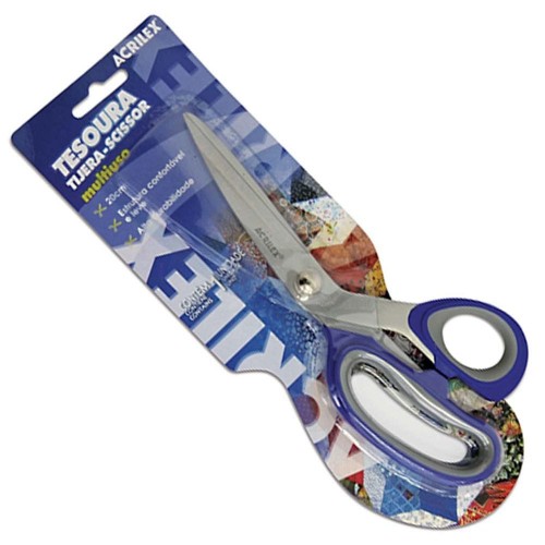 Descrição: Tesoura multiuso Acrilex 20cm. Formato anatômico, estrutura leve, ideal para cortes de tecido e alta durabilidade. Compre na 3G Papelaria em João Pessoa!