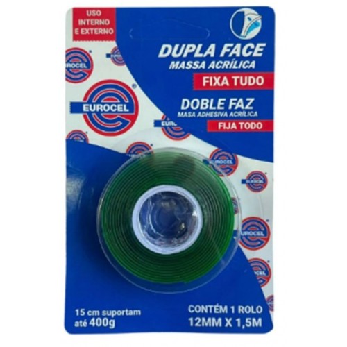 Fita Dupla Face Fixa Forte Uso Interno 12mm x 1,5m Eurocel